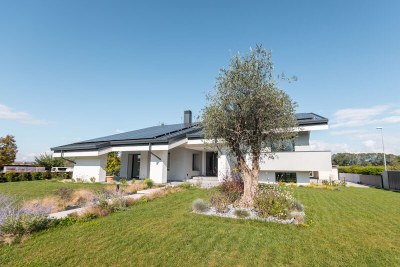 L’obiettivo dei clienti era ottenere spazi più luminosi e moderni: per questo abbiamo ampliato i fori finestra, introducendo serramenti in alluminio e aprendo gli ambienti verso il grande giardino esterno.